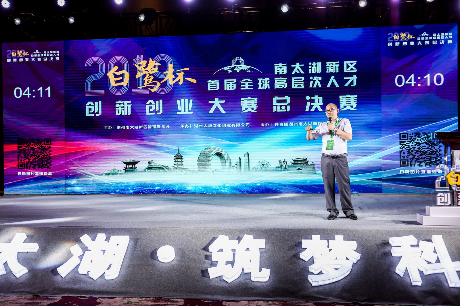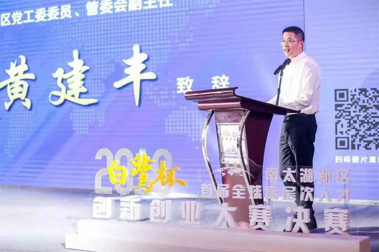 南太湖新區黨工委委員、管委會(huì )副主任黃建豐推介湖州科技城并介紹創(chuàng )賽情況。